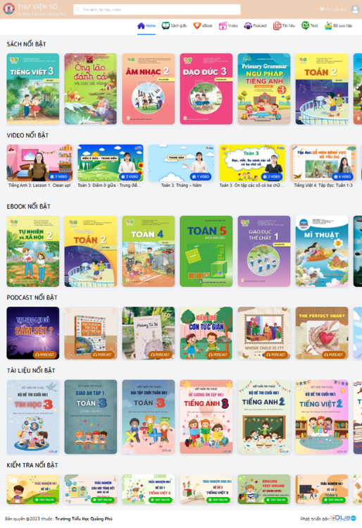 Ebook: Nhà trường cung cấp Ebook bộ sách giáo khoa, Ebook sách giáo viên mà trường đã chọn lựa và các Ebook học tiếng Anh bằng AI hay eBook tham khảo lên thư viện số để học sinh và giáo viên tham khảo khi không mang sách giấy bên cạnh.