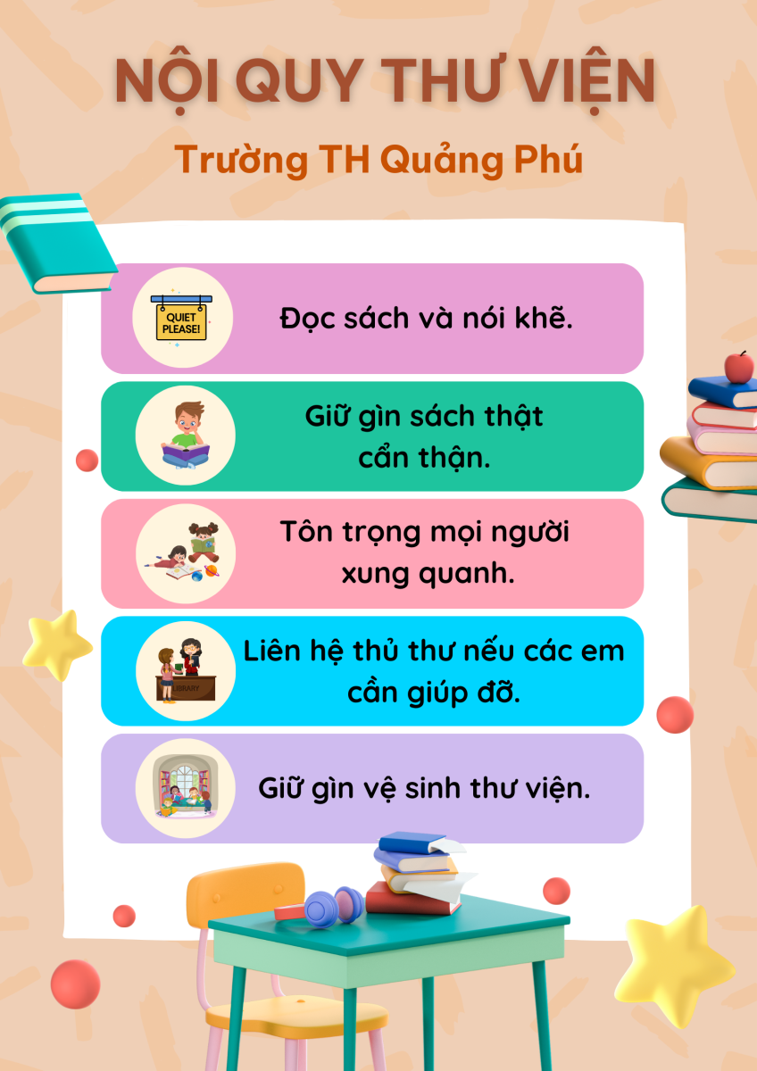 Trong thư viện của trường Tiểu học, mỗi học sinh đều phải giữ cho không gian yên tĩnh, tôn trọng sách và mọi người xung quanh. Việc trả sách đúng hạn và tình thần tự học là vô cùng quan trọng. Các em học sinh sẽ được hòa mình vào thế giới của tri thức, nơi nảy mình giữa những trang sách màu hồng và xanh, mang theo mùi của giấy in và cây viết mới mỗi khi bước chân vào.